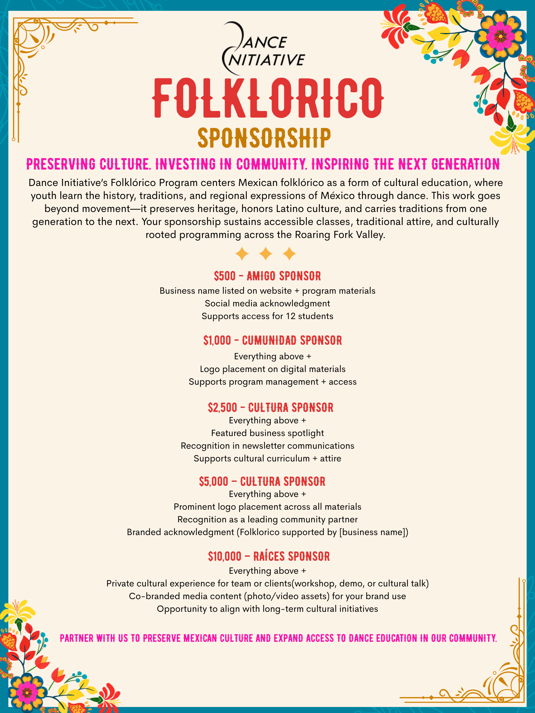 Partner with us to preserve Mexican culture and expand access to dance education in our community.